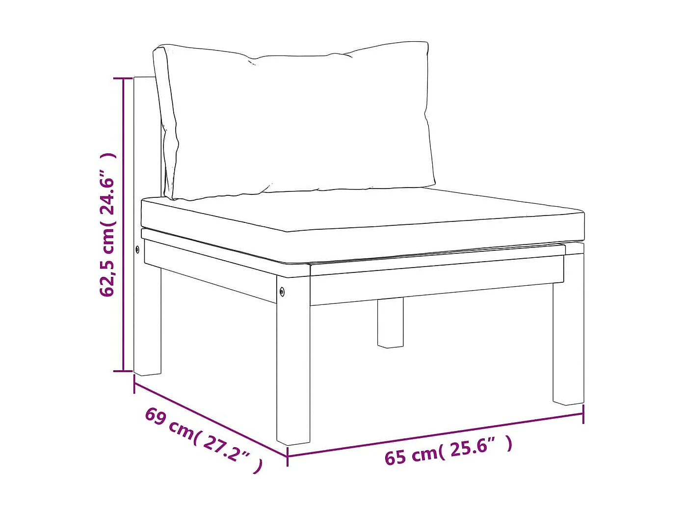 Salon de jardin 6 pcs avec coussin Bois d'acacia solide