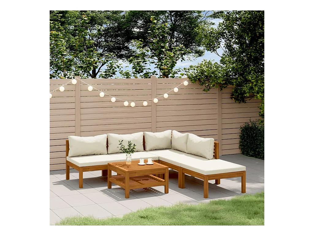 Salon de jardin 6 pcs avec coussin crème Bois d'acacia solide