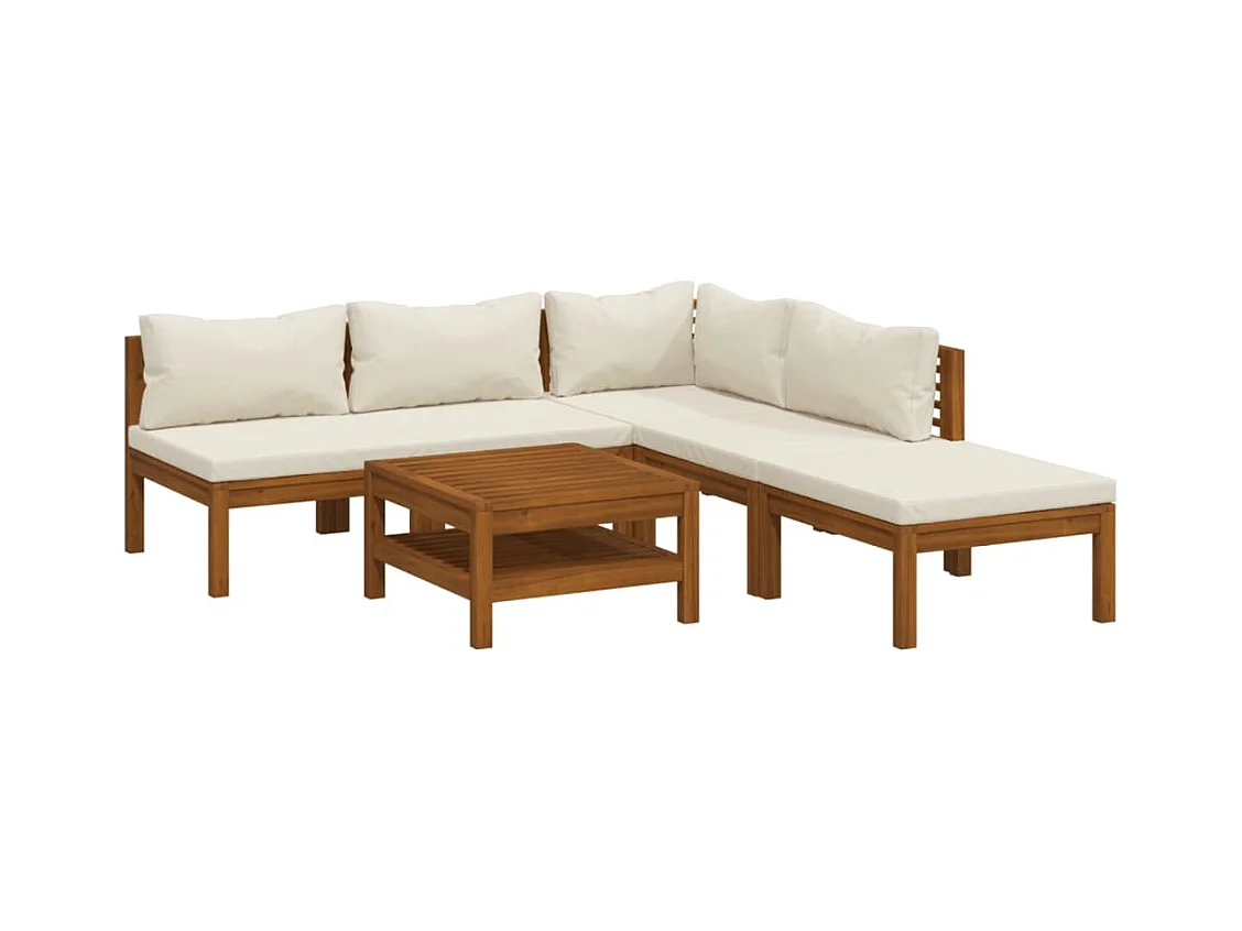 Salon de jardin 5 pcs avec coussin crème Bois d'acacia solide