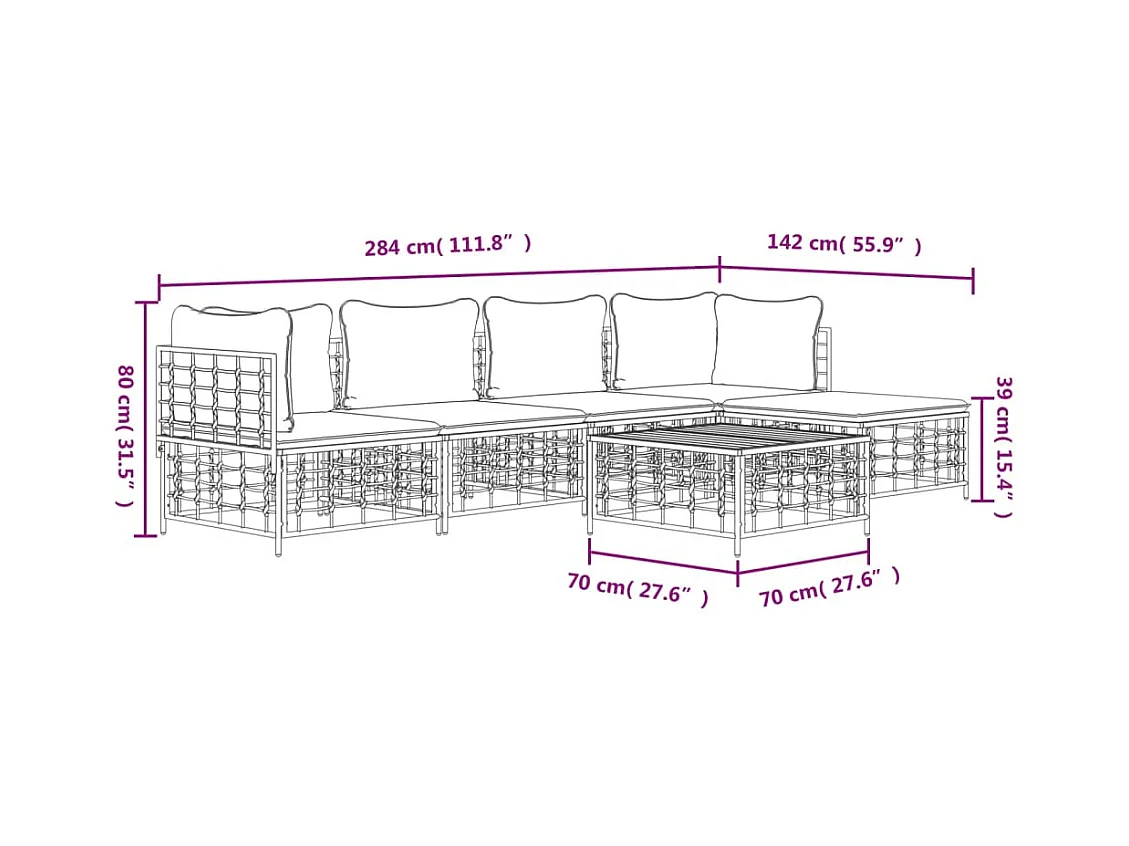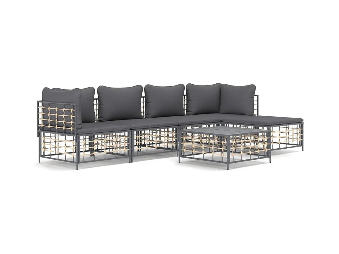 Salon de jardin 6 pcs avec coussins anthracite résine tressée