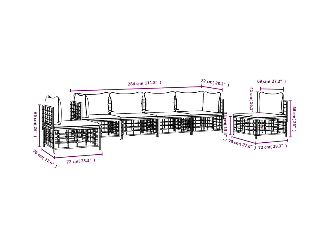 Salon de jardin 6 pcs avec coussins anthracite résine tressée