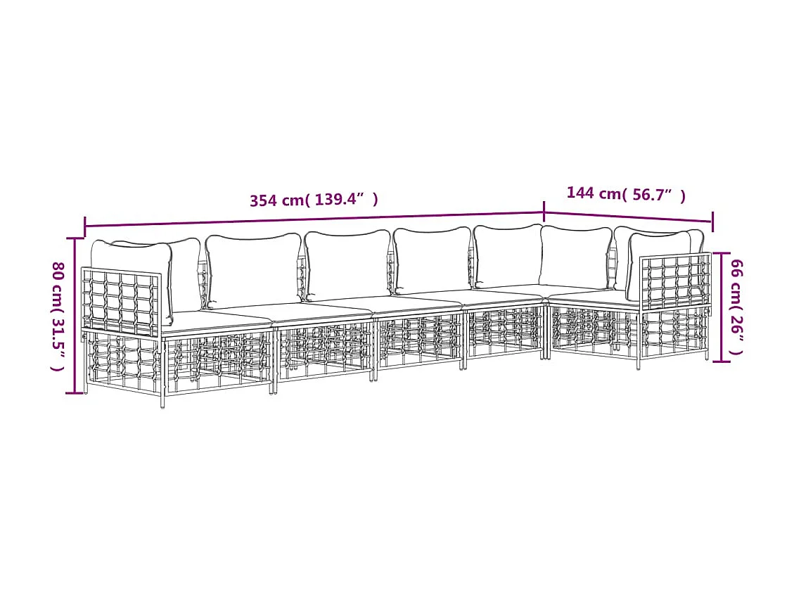 Salon de jardin 6 pcs avec coussins anthracite résine tressée