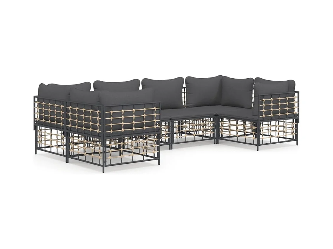 Salon de jardin 6 pcs avec coussins anthracite résine tressée