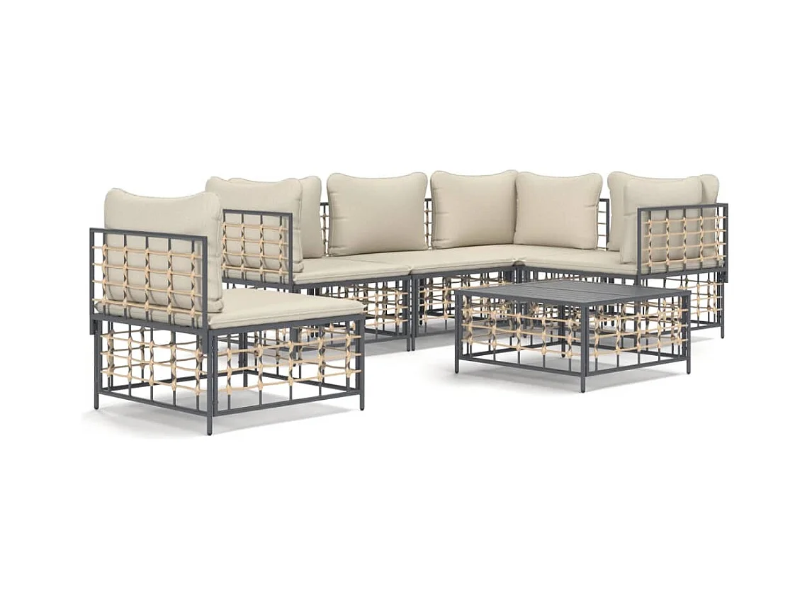 Salon de jardin 6 pcs avec coussins anthracite résine tressée