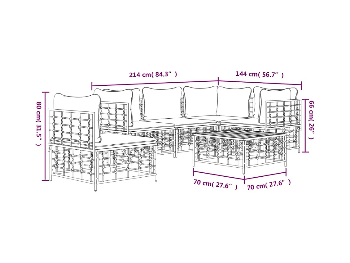 Salon de jardin 6 pcs avec coussins anthracite résine tressée