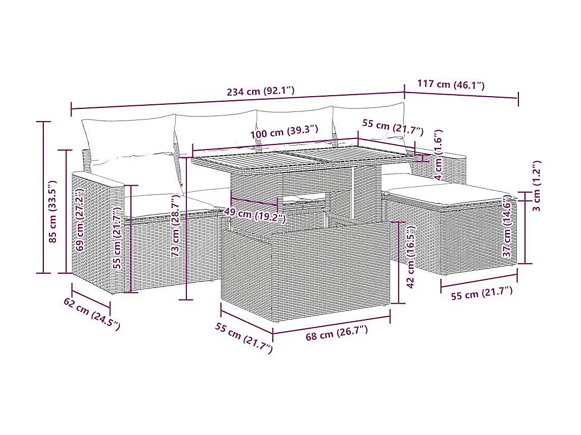 Salon complet de jardin Canapé 2 places et 2 fauteuils
