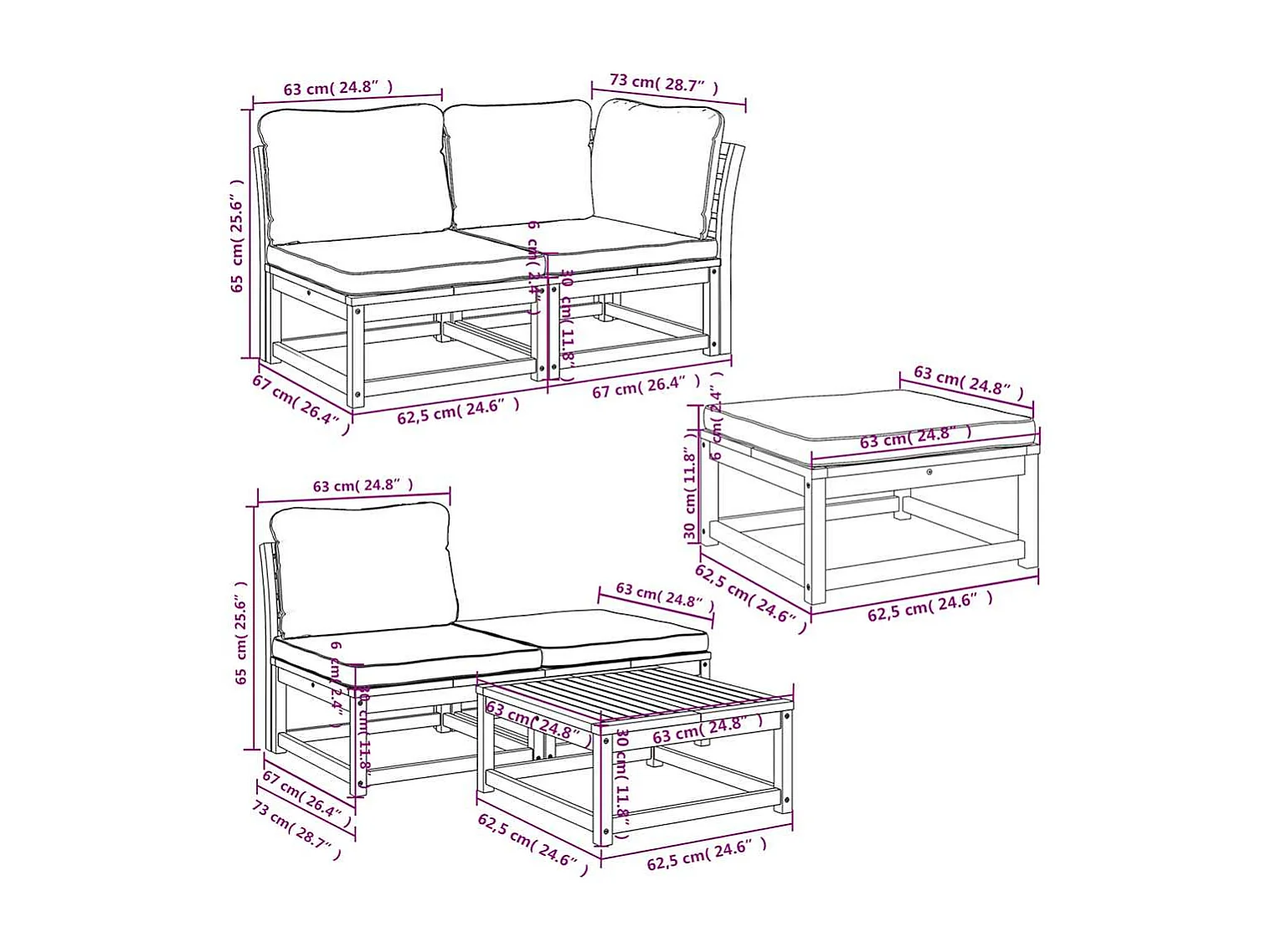 Salon de jardin 6 pcs avec coussins bois d'acacia solide