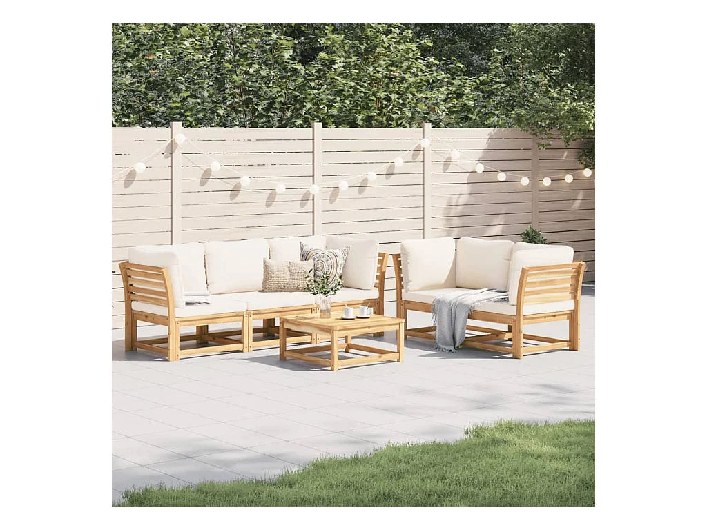 Salon de jardin 6 pcs avec coussins bois d'acacia solide