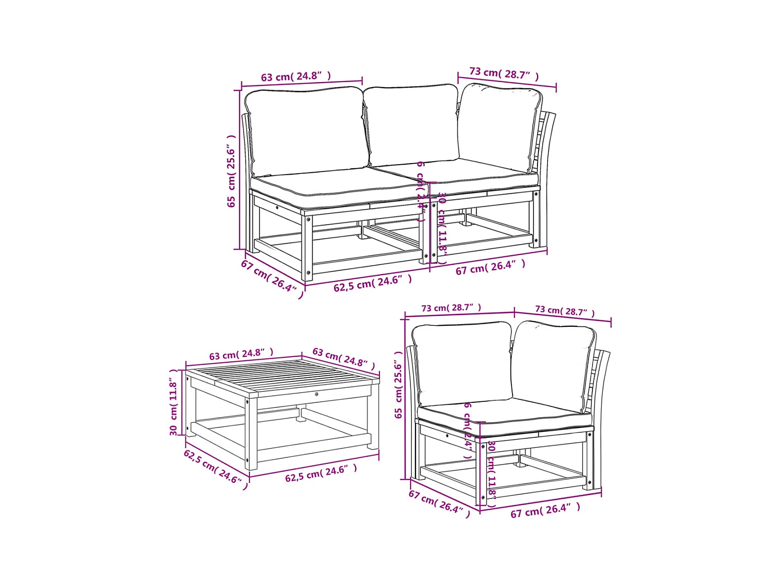 Salon complet de jardin Canapé 2 places et 2 fauteuils