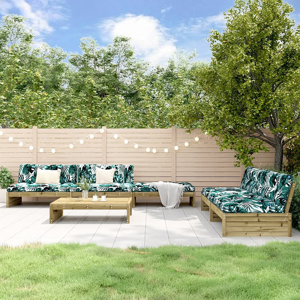 Salon de jardin 6 pcs avec coussins bois de pin imprégné