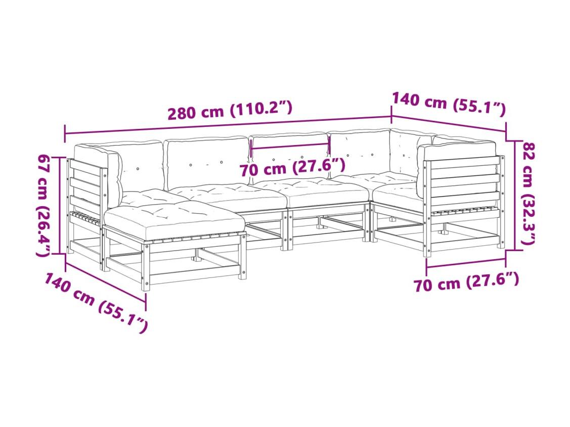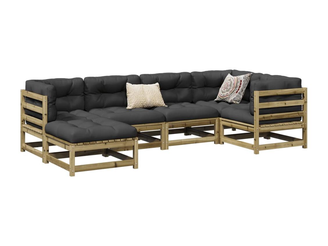 Salon de jardin 6 pcs avec coussins bois de pin imprégné