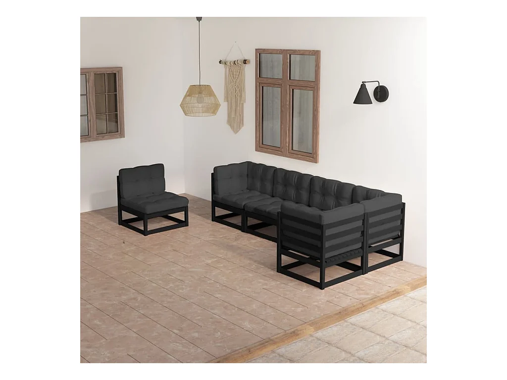 Salon de jardin 6 pcs Noir Bois de pin massif