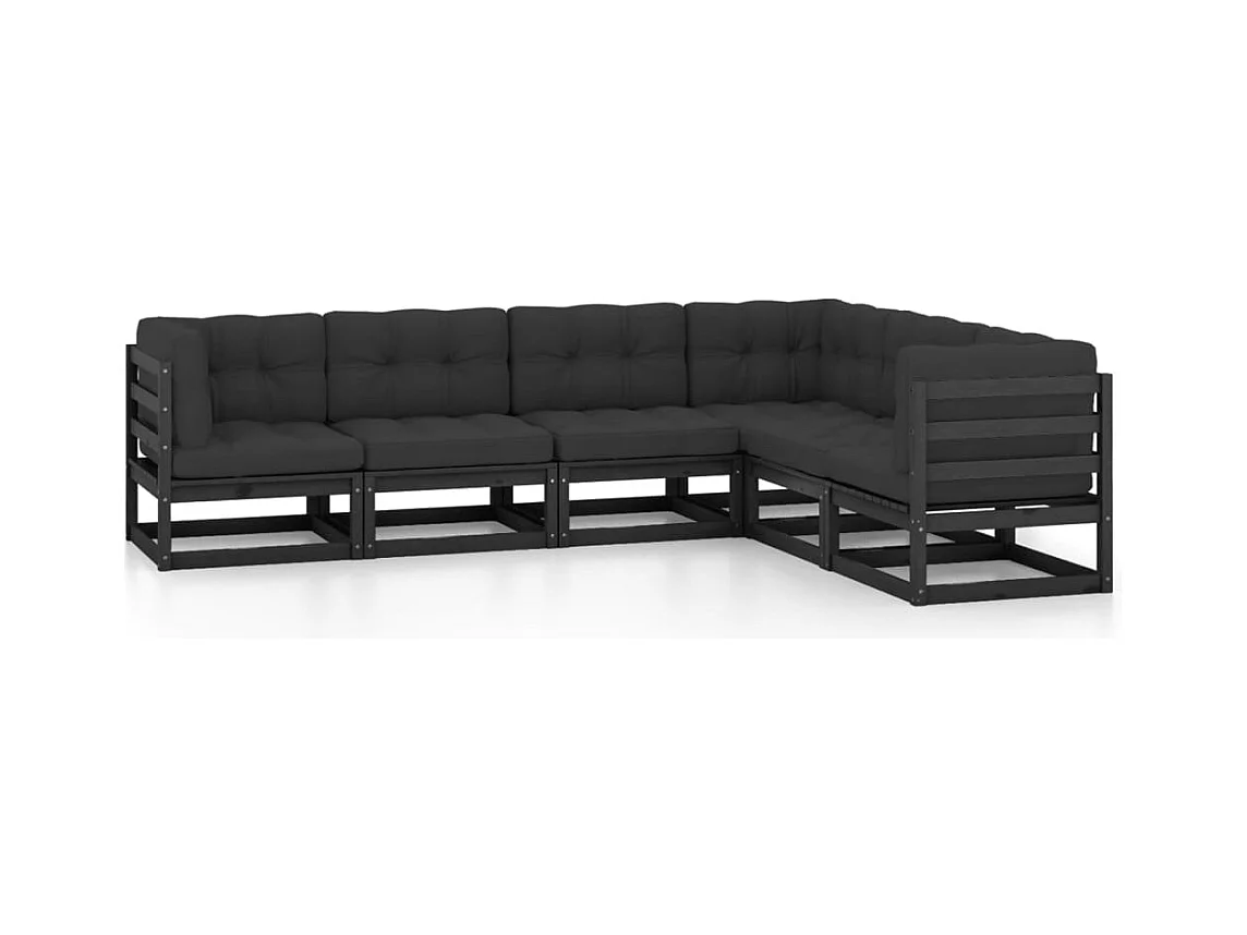 Salon de jardin 6 pcs Noir Bois de pin massif