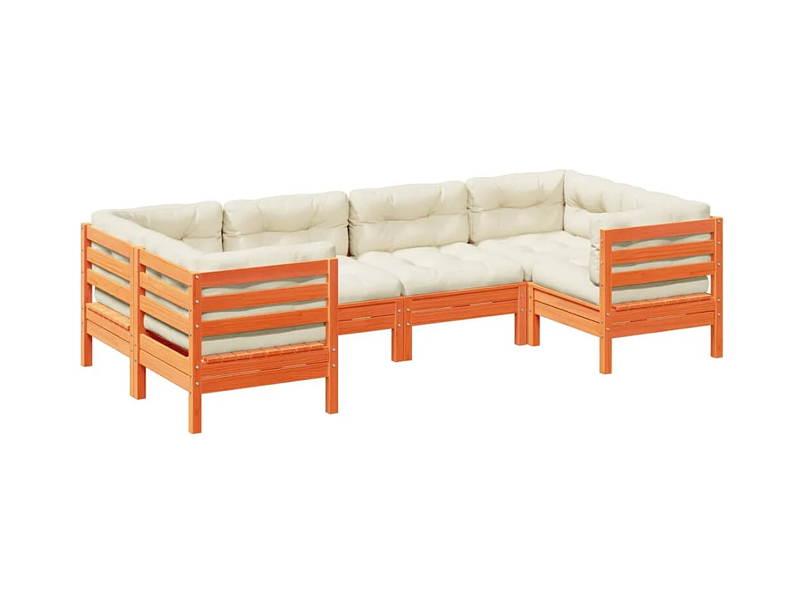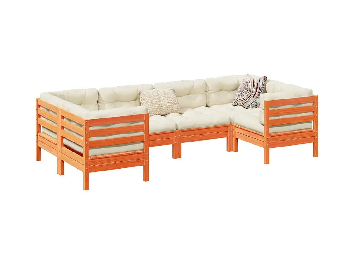 Salon de jardin 6 pcs avec coussins cire marron bois pin massif