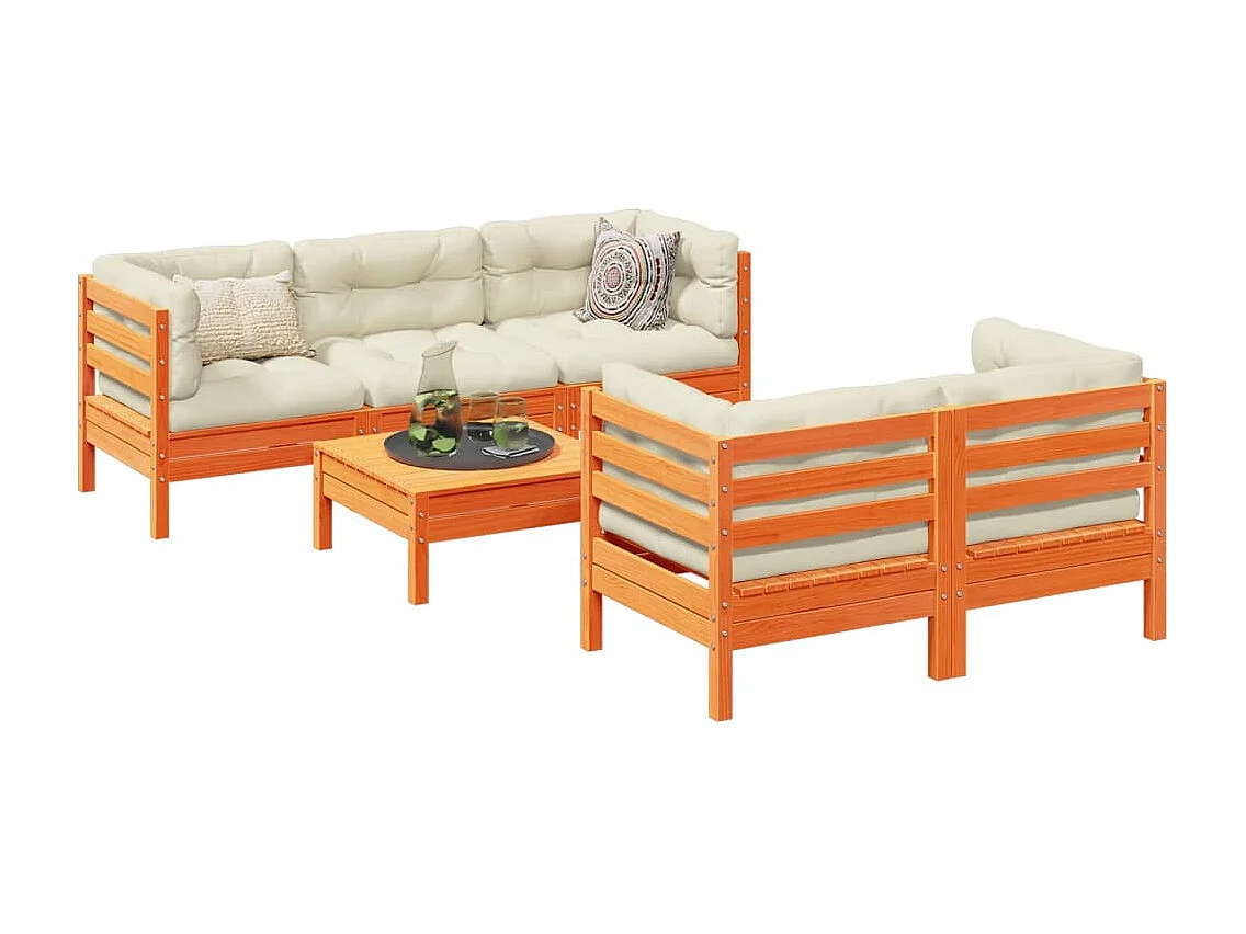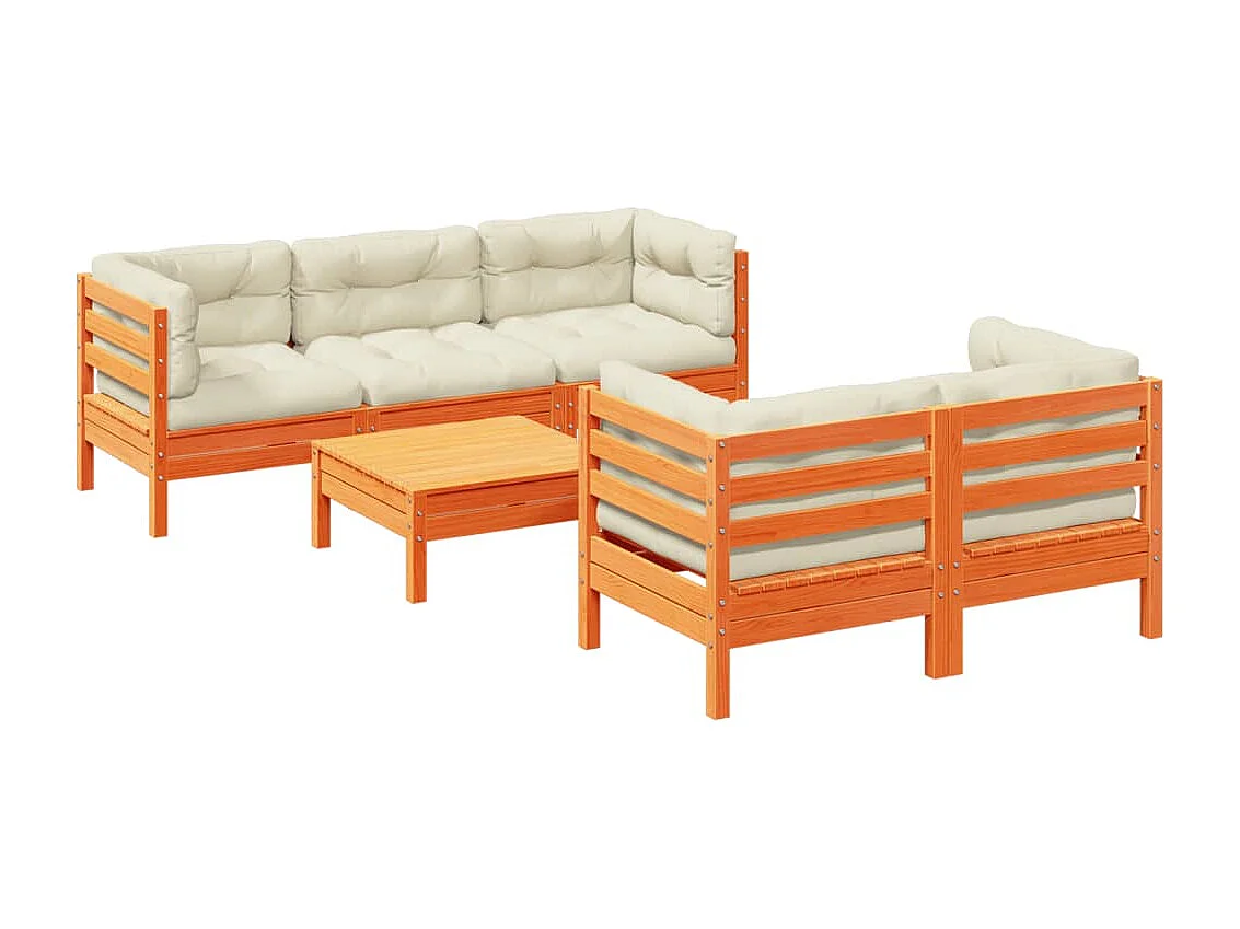 Salon de jardin 6 pcs avec coussins cire marron bois pin massif