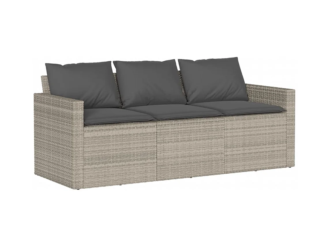 Salon de jardin avec coussins 3 pcs gris résine tressée