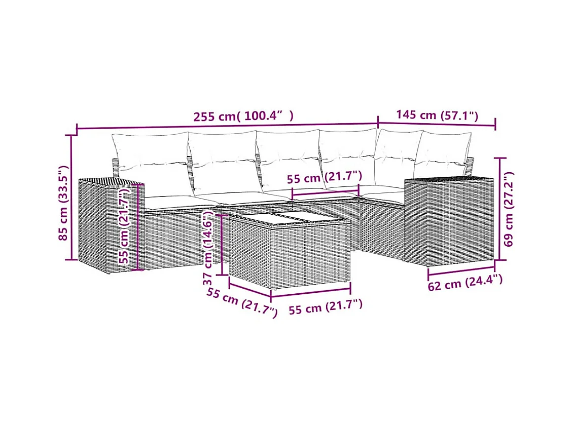 Salon complet de jardin Canapé 2 places et 2 fauteuils
