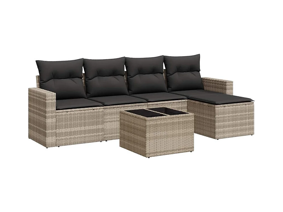 Salon de jardin 6 pcs avec coussins gris clair résine tressée