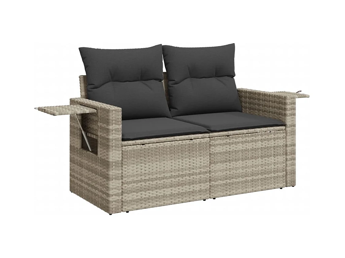 Salon de jardin 6 pcs avec coussins gris clair résine tressée
