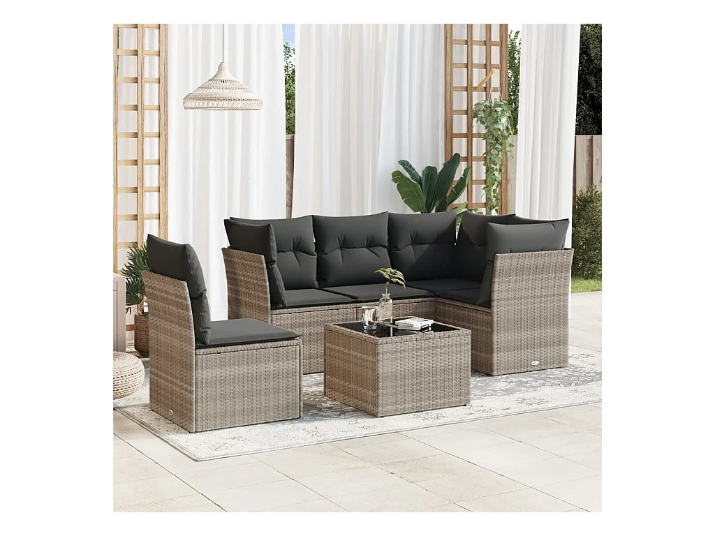 Salon de jardin 6 pcs avec coussins gris résine tressée