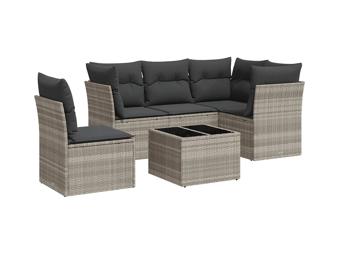 Salon de jardin 6 pcs avec coussins gris clair résine tressée
