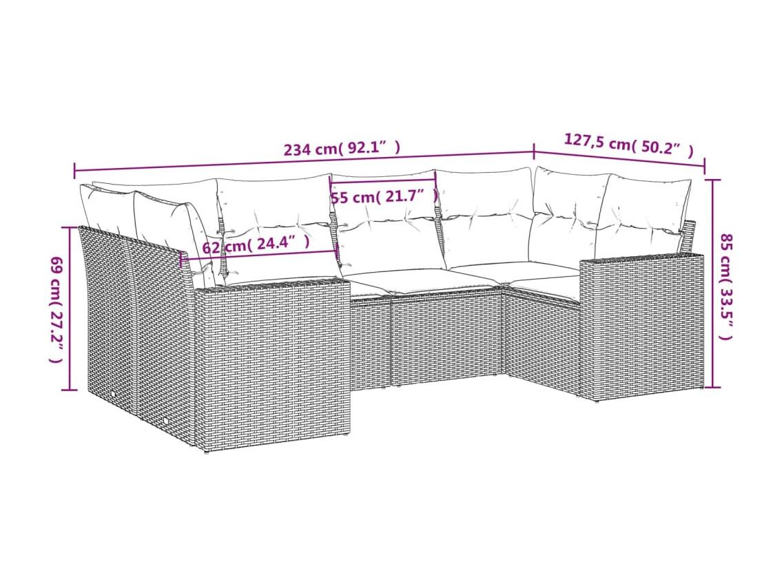 Salon de jardin 6 pcs avec coussins gris résine tressée