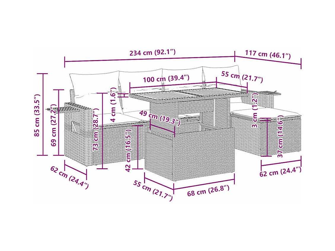 Salon complet de jardin Canapé 2 places et 2 fauteuils