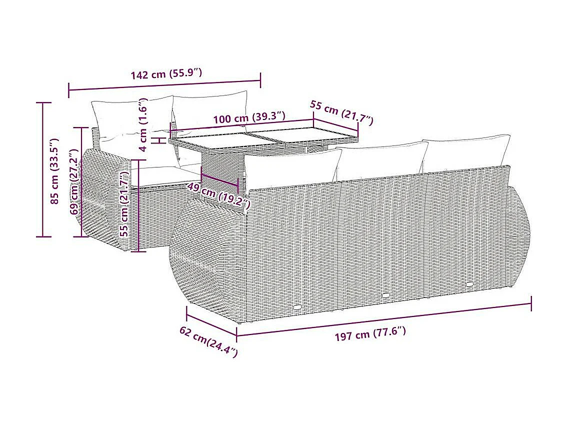 Salon complet de jardin Canapé 2 places et 2 fauteuils