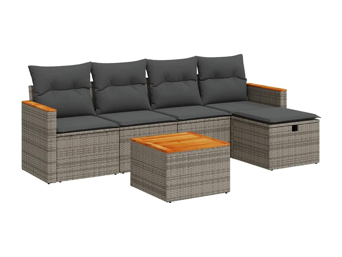 Salon de jardin 6 pcs avec coussins gris résine tressée