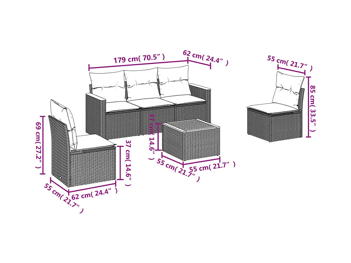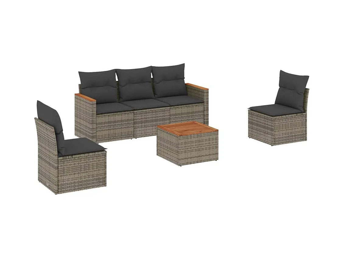 Salon de jardin 6 pcs avec coussins gris résine tressée