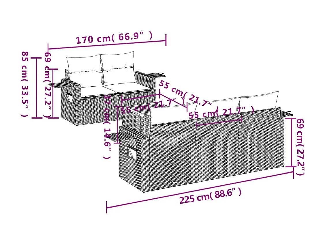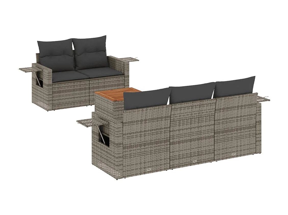 Salon de jardin 6 pcs avec coussins gris résine tressée
