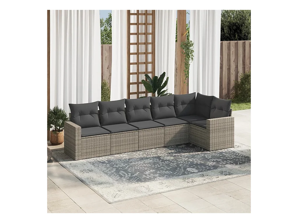 Salon de jardin 6 pcs avec coussins gris résine tressée