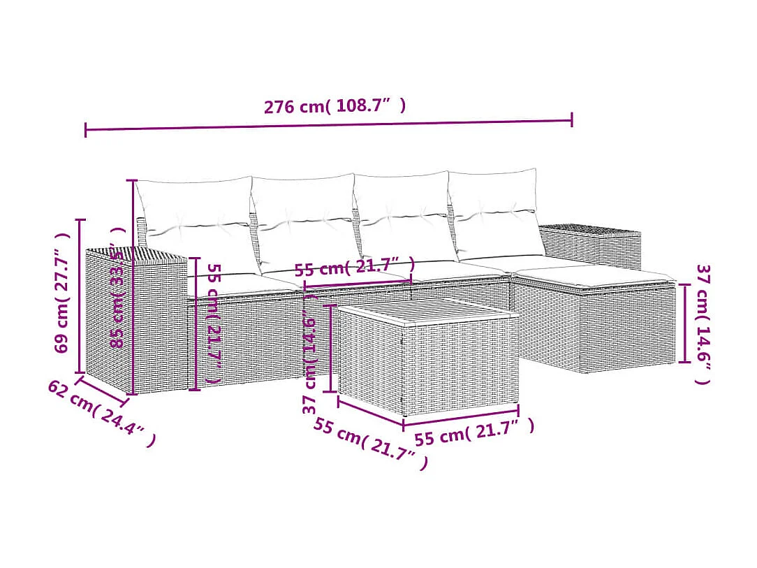 Salon de jardin 6 pcs avec coussins gris résine tressée