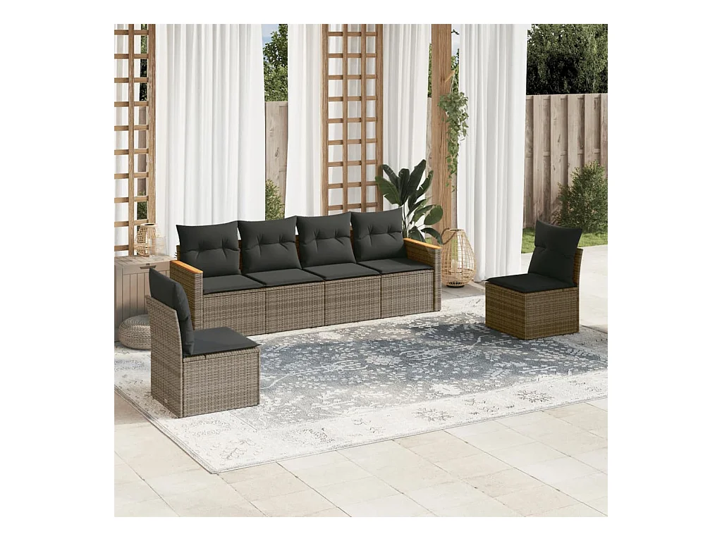 Salon de jardin 6 pcs avec coussins gris résine tressée FR62408