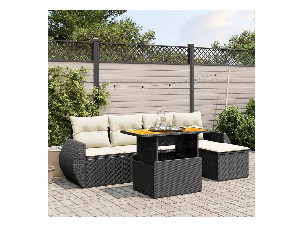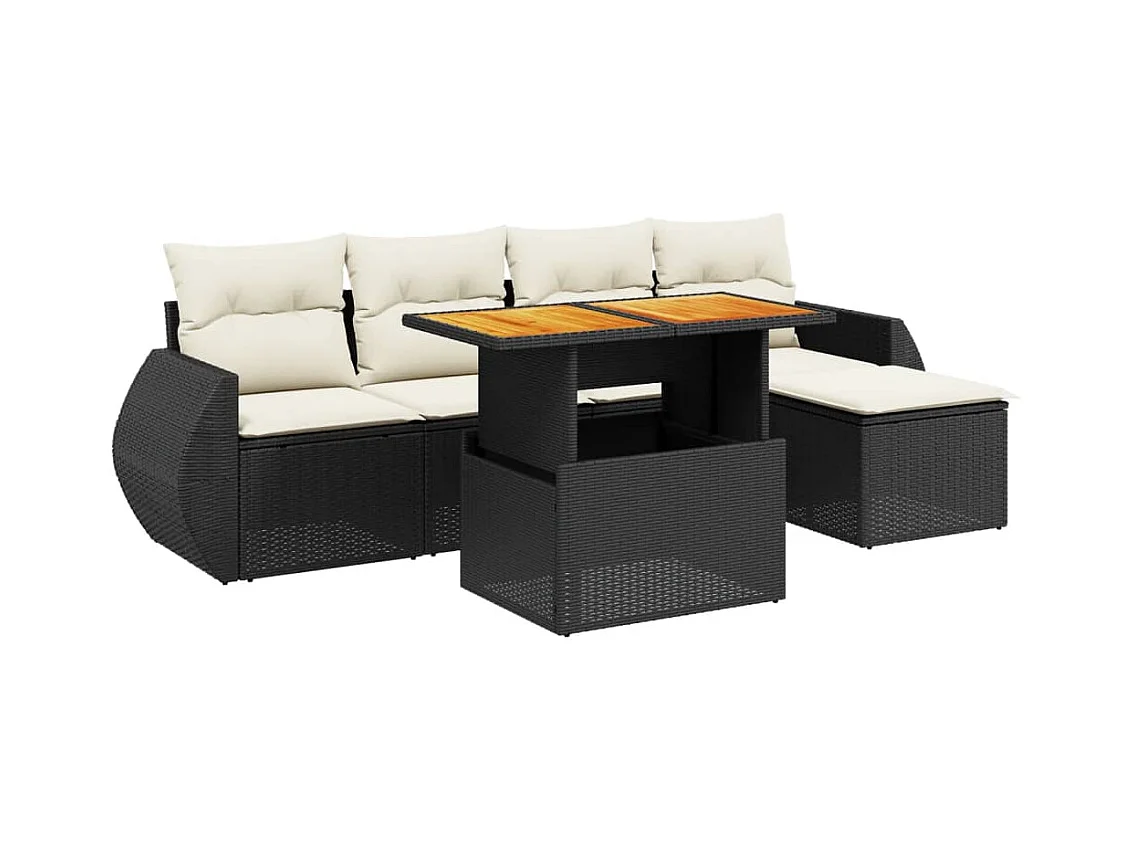 Salon de jardin 6 pcs avec coussins noir résine tressée
