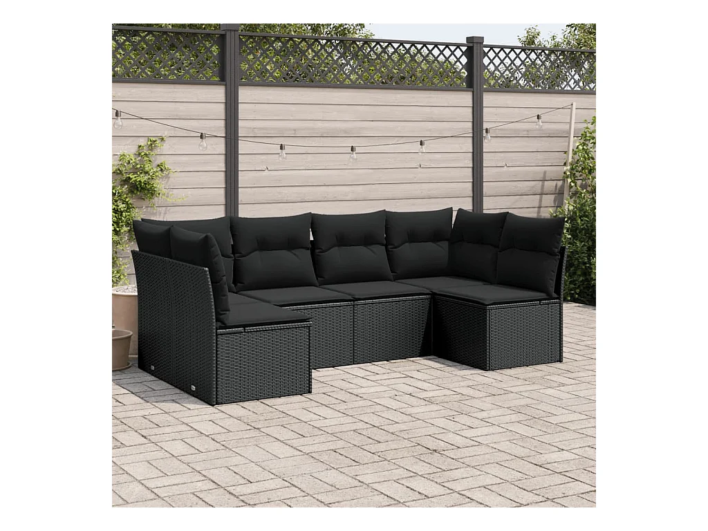 Salon de jardin 7 pcs avec coussins noir résine tressée
