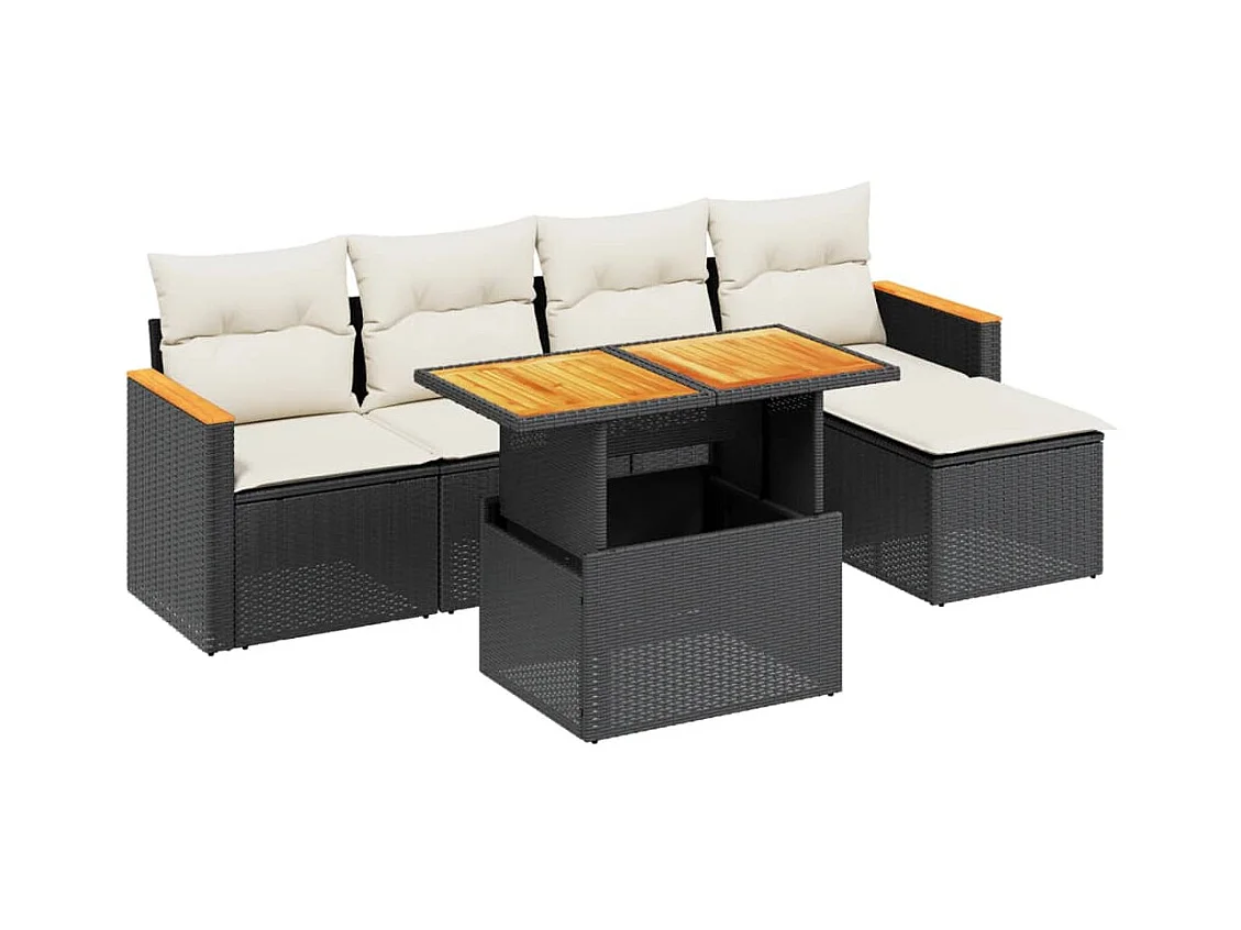 Salon de jardin 6 pcs avec coussins noir résine tressée