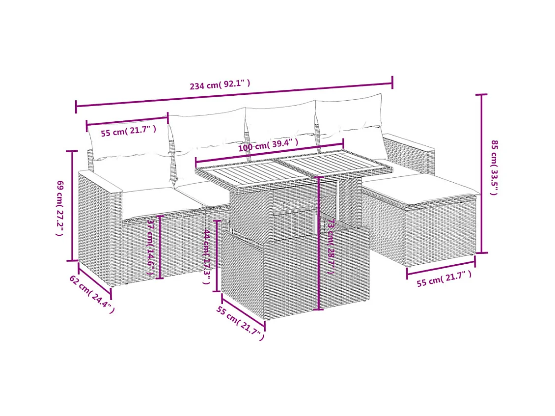 Salon complet de jardin Canapé 2 places et 2 fauteuils