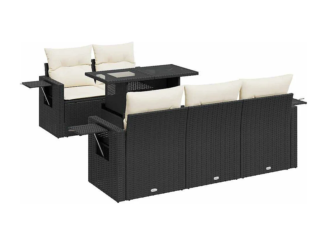 Salon de jardin 6 pcs avec coussins noir résine tressée