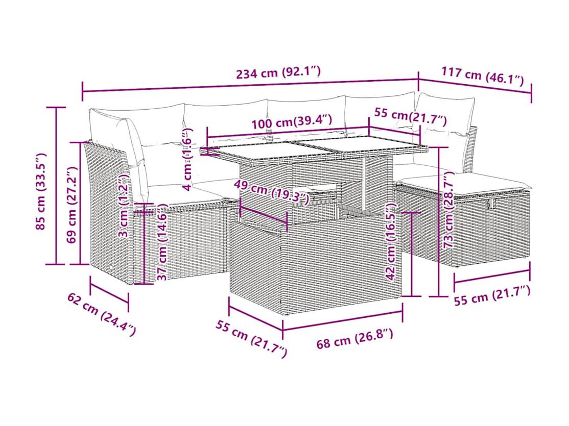 Salon de jardin 6 pcs avec coussins noir résine tressée