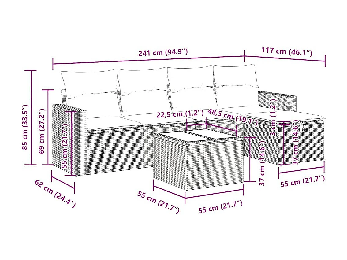 Salon complet de jardin Canapé 2 places et 2 fauteuils