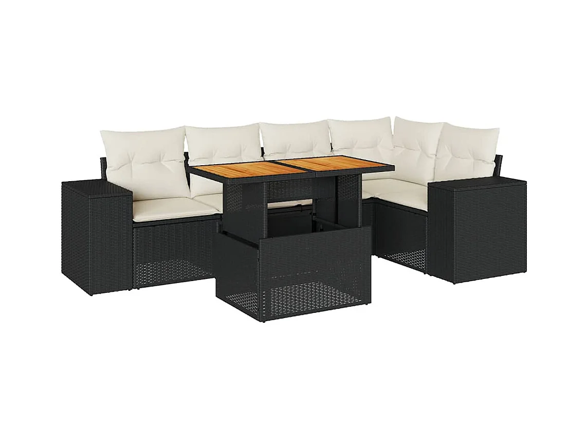 Salon de jardin 6 pcs avec coussins noir résine tressée