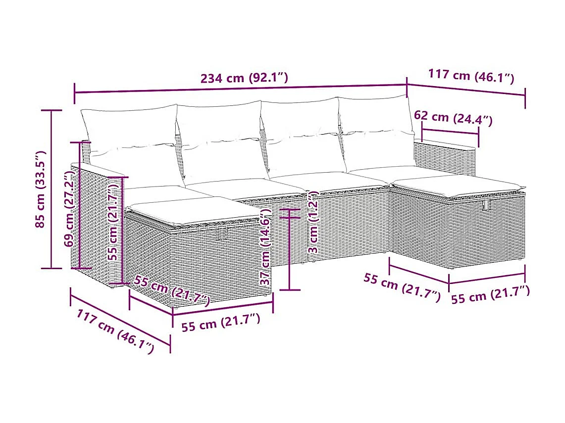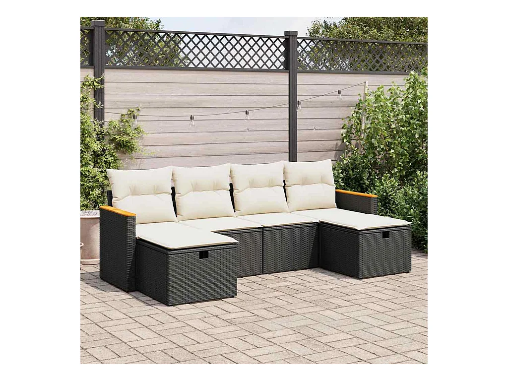 Salon de jardin 6 pcs avec coussins noir résine tressée