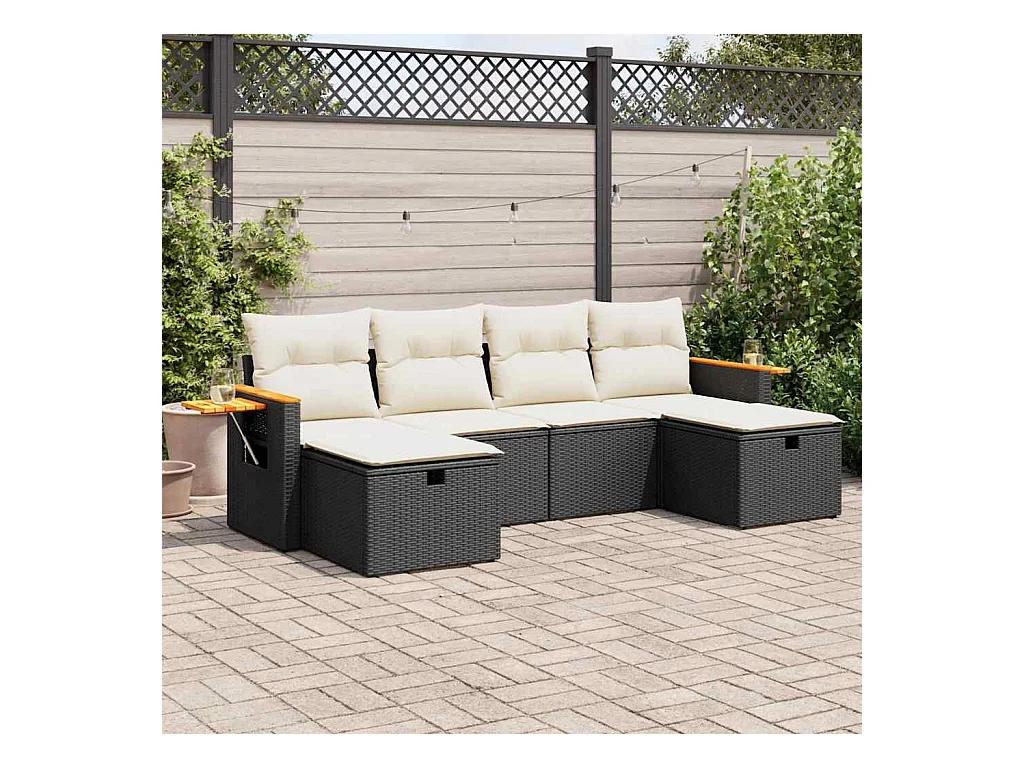 Salon de jardin 6 pcs avec coussins noir résine tressée