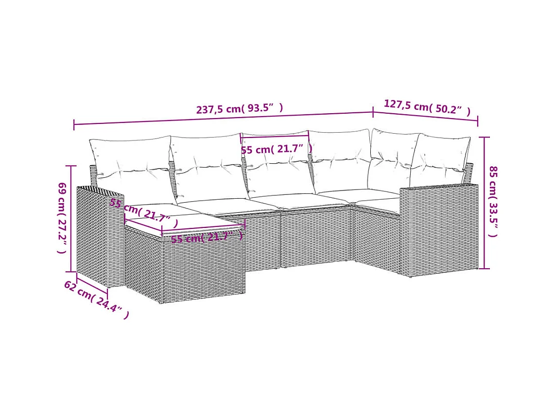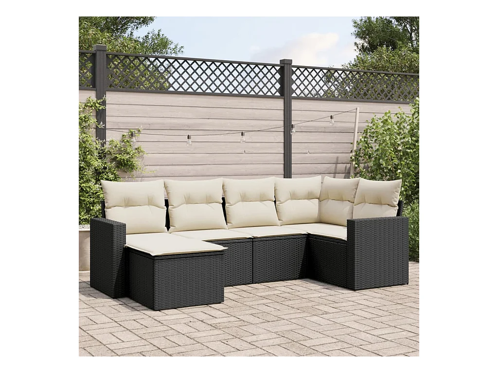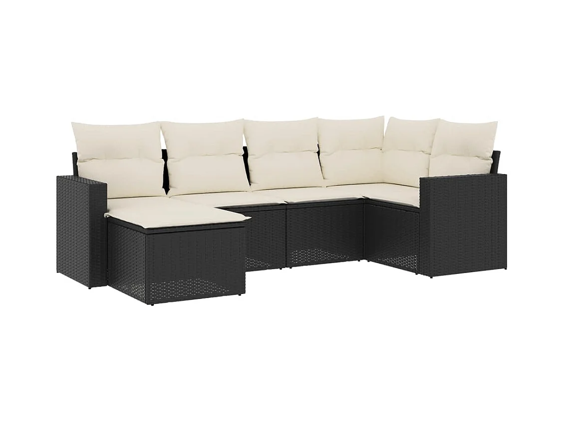Salon de jardin 6 pcs avec coussins résine tressée noir