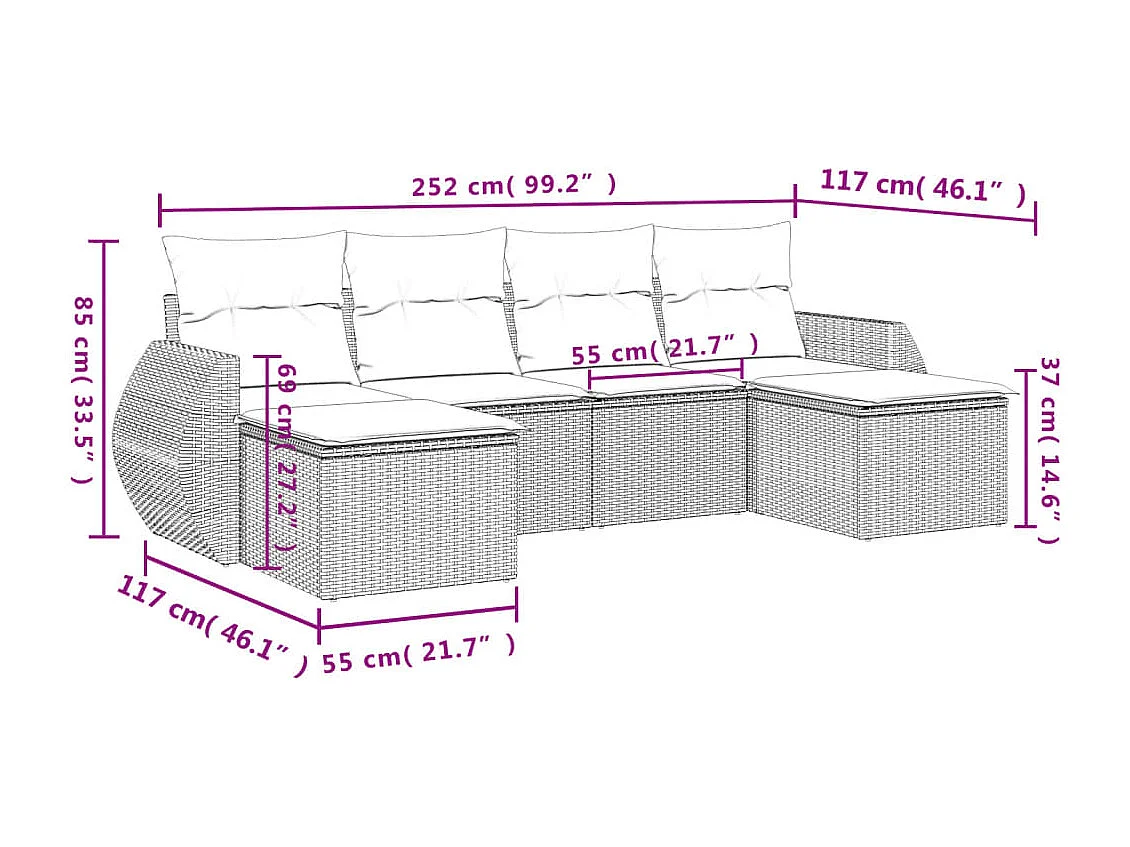 Salon de jardin 6 pcs avec coussins noir résine tressée