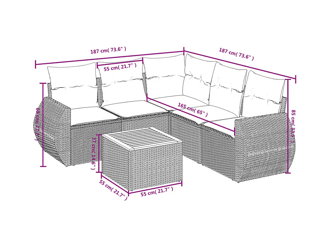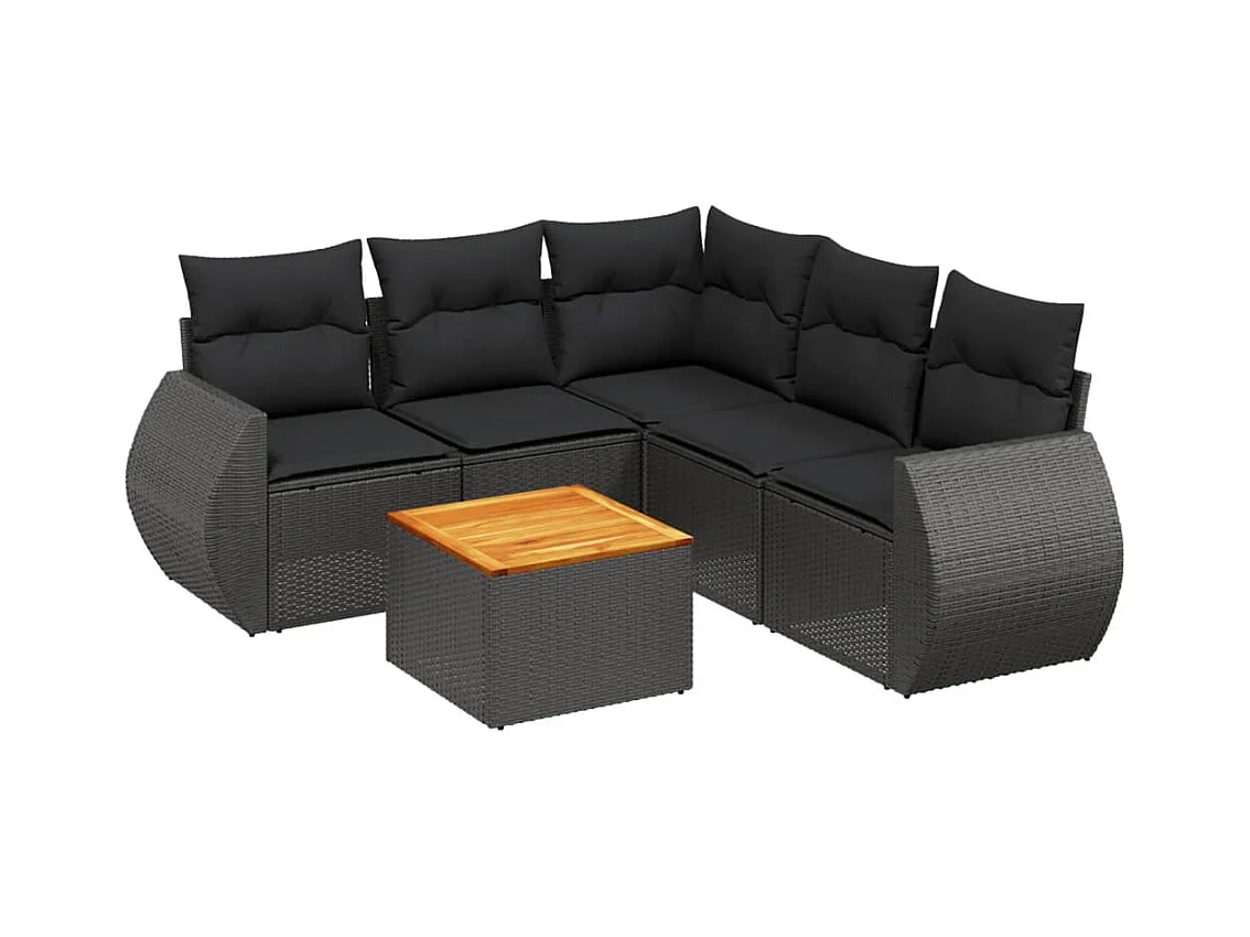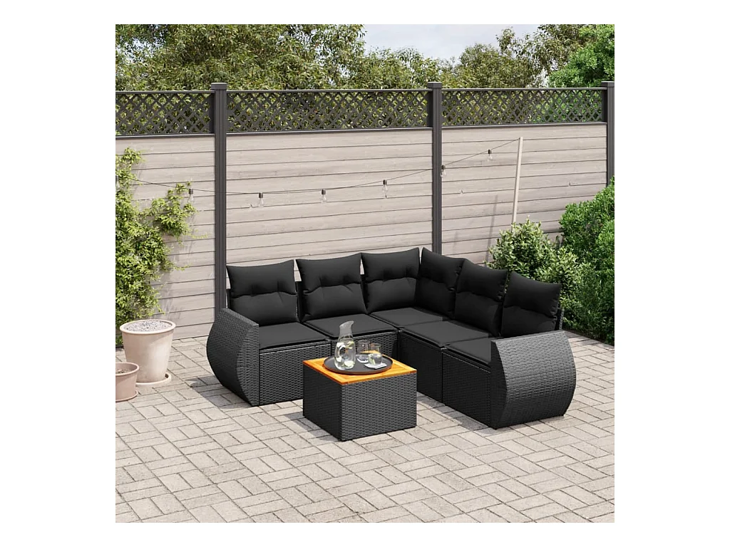 Salon de jardin 6 pcs avec coussins noir résine tressée