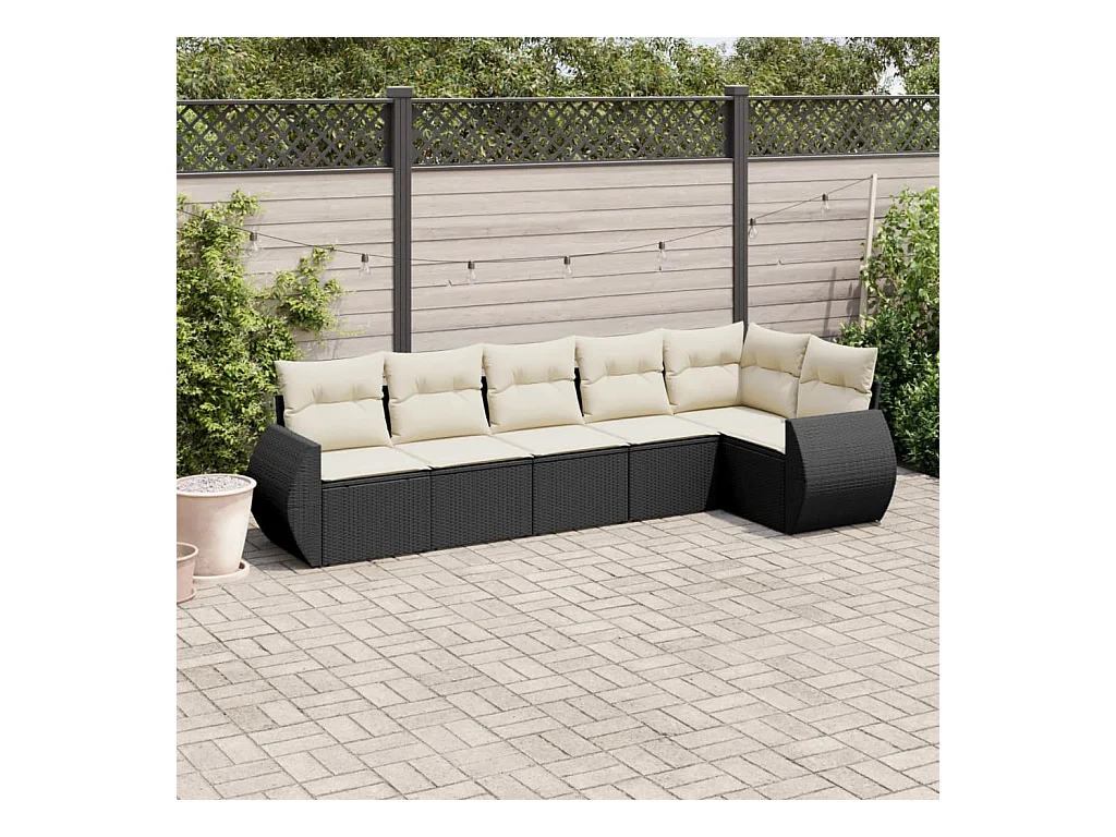 Salon de jardin 6 pcs avec coussins noir résine tressée FR83770