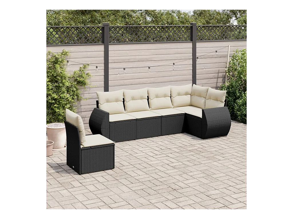 Salon de jardin 6 pcs avec coussins noir résine tressée FR27500
