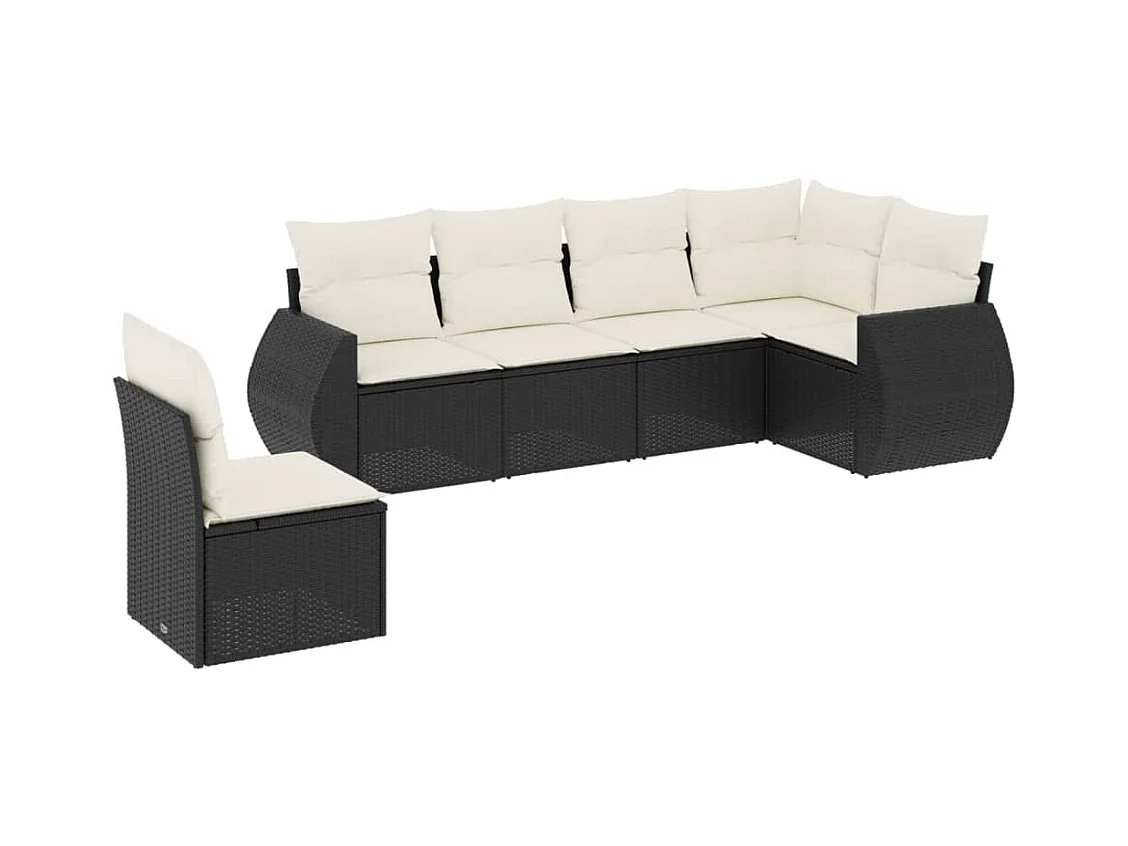 Salon de jardin 6 pcs avec coussins noir résine tressée FR83770